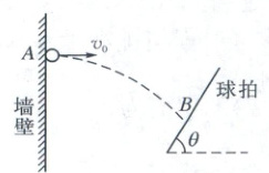 2. 物理生活如图所示,某同学对着墙壁练习打乒乓球,某次球与墙壁上A点碰撞后水平弹离,且球垂直落到球拍上,已知球拍与水平方向夹角$\theta =60^{\circ}$,A、B两点高度差$h = 0.2$m,取重力加速度$g = 10$m/s$^{2}$,则球刚要落到球拍上时的速度大小为 (