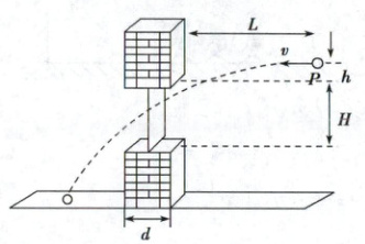 6. 如图所示,窗子上、下沿间的高度$H = 1.6$m,墙的厚度$d = 0.4$m.某人在离墙壁距离$L = 1.4$m、距窗子上沿$h = 0.2$m处的P点,将可视为质点的小物件以速度$v$水平抛出,要求小物件能直接穿过窗口并落在水平地面上,不计空气阻力,$g$取10 m/s$^{2}$,则可以实现上述要求的速度大小是 (