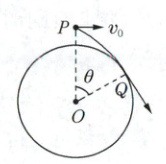 1. [2025 安徽安庆月考]在水平放置的圆柱体轴线的正上方的 $ P $ 点,将一个小球以水平速度 $ v_0 $ 垂直圆柱体的轴线抛出,小球飞行一段时间后恰好从圆柱体上 $ Q $ 点沿切线飞过,测得 $ O $、$ Q $ 连线与竖直方向的夹角为 $ \theta $,那么小球经过 $ Q $ 点时的速度是(