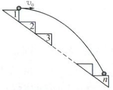 3. [北京西城区期中]如图所示,在一个足够长的斜面上,有很多个台阶,每一个台阶高均为 $ 15 \, cm $,宽均为 $ 20 \, cm $,从上到下将台阶标记为第 $ 1 $、第 $ 2 $、第 $ 3 ·s ·s $ 号台阶。现在从第 $ 1 $ 号台阶末端沿水平方向抛出一个小球,抛出的初速度为 $ 5 \, m/s $,小球在空中运动的轨迹平面与过抛出点的台阶纵切面在同一个竖直平面内,不计空气阻力。小球第一次将落在第 $ n $ 号台阶上,则 $ n $ 为(