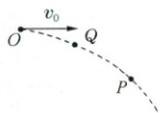 4. [2025 重庆万州月考]一网球(视为质点)在 $ O $ 点以速率 $ v_0 $ 被水平击出,运动轨迹如图所示,网球从 $ O $ 点运动到 $ Q $ 点的时间等于从 $ Q $ 点运动到 $ P $ 点的时间。忽略空气阻力,下列说法正确的是(