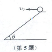 5.AD 由平抛运动规律的推论可知,落在斜面上的炮弹速度方向与水平方向夹角的正切值均等于斜面倾角正切值的两倍,故炮弹速度方向与斜面夹角不变,A正确,B、C错误;对落在斜面上的炮弹,有$\tan \theta = \frac{\frac{1}{2}gt^{2}}{v_{0}t}$,解得$t = \frac{2v_{0}\tan \theta}{g}$,由于初速度变为原来的一半,则运动时间变为原来的一半,由$x = vt$可知,水平位移变为原来的$\frac{1}{4}$,由几何关系可知,炮弹的位移变为原来的$\frac{1}{4}$,D正确。