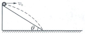 10. [山东高一期中]在山顶扔石块,可以简化为如图所示的模型,倾角为θ的斜面固定在水平面上,从斜面顶端以速度$v_0$水平抛出一小球,经过时间$t_0$恰好落在斜面底端,速度为 v,不计空气阻力. 下列说法正确的是(