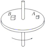 3. 如图所示,$ A $、$ B $ 两物块置于绕竖直轴匀速转动的水平圆盘上,两物块始终相对圆盘静止.已知两物块的质量 $ m_A < m_B $,运动半径 $ r_A > r_B $,则下列关系一定正确的是 (