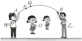 5. [2025 云南昭通期末]如图所示,甲、乙两位同学握住绳子 $ A $、$ B $ 两端摇动,$ A $、$ B $ 两端近似不动,且 $ A $、$ B $ 两点连线始终沿水平方向,绳子上 $ P $、$ Q $ 两点均同步在竖直面做匀速圆周运动.当绳子在空中转到图示位置时,下列说法正确的是 (