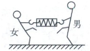 9. 如图所示,一对男、女溜冰运动员的质量分别为 $ m_{男} = 80 \, kg $、$ m_{女} = 40 \, kg $,面对面拉着一弹簧测力计做匀速圆周运动的溜冰表演.不计冰面的摩擦,则男、女两人 ()