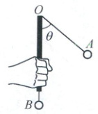 9. [2024 江西赣州期中]某同学手持如图所示的装置研究圆锥摆运动. 手握细长、内壁光滑的钢管,穿过钢管的细线一端连接着小球 A,另一端连接着质量为 m 的小球 B,通过外力作用使小球 A 做稳定的圆锥摆运动,OA 段细线长为 L,OA 段细线与竖直方向的夹角为$θ=60^{\circ }$,小球 B 保持静止不动,重力加速度大小为 g,小球看成质点,钢管的重力不计.