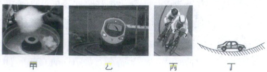 8. BD 图甲,制作棉花糖时,糖水因为离心运动而被甩出去,不是受到了离心力的作用,A错误;图乙,火车轨道的外轨略高于内轨,火车拐弯时速度较小时,会使内轨挤压内侧轮缘,火车速度越小,内轨和内侧轮缘之间的挤压力越大,故火车轮与轨道磨损不一定越小,B正确;图丙,该自行车在赛道上做匀速圆周运动,所受的合外力方向改变,C错误;在一座凹形桥的最低点,由$N - mg = m\frac{v^{2}}{R}$可知,同一辆车子速度越大,桥面对车子的支持力越大,即车对桥面的压力越大,D正确.
