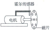 9. (物理科技)[2025 江苏南京月考]如图所示为测量汽车实时速度的传感器原理图.其中与轮胎共轴的圆盘在电机的带动下转动,运用霍尔元件作为检测传感器,将霍尔传感器安装在靠近圆盘的固定位置上,并在圆盘上均匀安装 8 个磁片,当磁片转到霍尔元件附近时,霍尔元件输出低电平信号.当转盘转动时,行车电脑可以方便地计算出转盘的运转速度,进而显示出车速等信息.已知某辆汽车在公路上匀速行驶,在 1 s 内,计算机检测到 3 个低电平信号(在这 1 s 初刚好检测到一个信号).汽车轮胎的半径为 $ R = 0.3 m $.根据以上信息,下列说法正确的是(