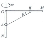 (1)为使得金属环 $ B $ 与水平粗糙杆 $ OM $ 间没有摩擦力,角速度 $ \omega $ 应为多大?