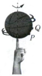 1. [辽宁高考真题]“指尖转球”是花式篮球表演中常见的技巧.如图,当篮球在指尖上绕轴转动时,球面上$P$、$Q$两点做圆周运动的(
