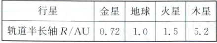 6. [2025 山东月考]2025 年 2 月 28 日前后,在夜空观察时,太阳系中的土星、水星、海王星、金星、天王星、木星和火星将大致连成一条直线,上演“七星连珠”天象. 人们肉眼能看到金星、火星和木星,下表为金星、地球、火星和木星四个行星的天文数据. 下列说法正确的是(