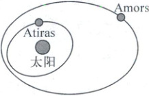 2. 如图所示是太阳系中两颗小行星的轨道示意图,已知两颗小行星的轨道在同一平面内,其中 Amors 轨道的半长轴大于 1 AU,Atias 轨道的半长轴小于 0.98 AU,可知(