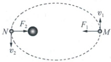 4. 新考法 [2025 江苏泰州开学考试]如图所示,质量为 $ m $ 的人造卫星在椭圆轨道上运动,远地点 $ M $ 和近地点 $ N $ 到地球球心的距离分别为 $ r_1 $、$ r_2 $,卫星在 $ M $、$ N $ 处的速度和所受地球引力大小分别为 $ v_1 $、$ F_1 $ 和 $ v_2 $、$ F_2 $,则(