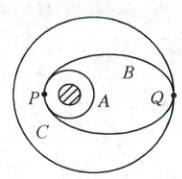7. 如图所示,飞船在地面指挥控制中心的控制下,由近地点圆形轨道 $A$,经椭圆轨道 $B$ 转变到远地点的圆轨道 $C$。轨道 $A$ 与轨道 $B$ 相切于 $P$ 点,轨道 $B$ 与轨道 $C$ 相切于 $Q$ 点,下列说法正确的是(