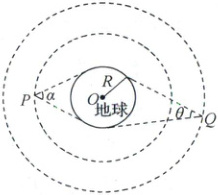 10. (思维提升)[2025 河北模拟预测]“北斗”卫星导航系统是我国自主研制开发的区域性三维卫星定位与通信系统。假设系统中有在同一轨道平面上同向运行的两颗地球卫星 $P$、$Q$,其对地张角分别为 $\alpha$、$\theta$,其中 $\alpha > \theta$,如图所示。已知地球的半径为 $R$,地球表面的重力加速度为 $g$。求: