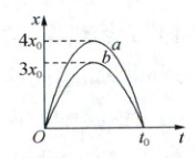 (1)双星系统中的两颗恒星$a$、$b$绕$O$点做圆周运动,两颗星体的角速度相同;由图像可知,该双星系统的周期为$2t_{0}$,$a$与轨迹中心间的距离为$4x_{0}$,$b$与轨迹中心间的距离为$3x_{0}$,可得$r_{a}:r_{b} = 4:3$,由线速度与角速度的关系$v = \omega r$可知,$a$、$b$的线速度之比为$v_{a}:v_{b} = 4:3$.