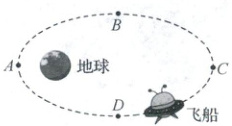 5. [2025 广东佛山阶段练习]如图所示,神舟十七号载人飞船绕地球沿椭圆轨道运动,运动周期为 $T$,图中虚线为飞船的运行轨迹,$A$、$B$、$C$、$D$ 是轨迹上的四个位置,其中 $A$ 点距离地球最近,$C$ 点距离地球最远。$B$ 点和 $D$ 点是弧线 $ABC$ 和 $ADC$ 的中点,下列说法正确的是(