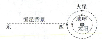 10. (探究题[湖南卷]如图所示,火星与地球近似在同一平面内,绕太阳沿同一方向做匀速圆周运动,火星的轨道半径大约是地球的 1.5 倍。地球上的观测者在大多数的时间内观测到火星相对于恒星背景由西向东运动,称为顺行;有时观测到火星由东向西运动,称为逆行。当火星、地球、太阳三者在同一直线上,且太阳和火星位于地球两侧时,称为火星冲日。忽略地球自转,只考虑太阳对行星的引力,下列说法正确的是(