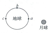 1. [广西高考真题]潮汐现象出现的原因之一是在地球的不同位置海水受到月球的引力不相同.图中$a$、$b$和$c$处单位质量的海水受月球引力大小在(