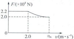 (2)由题意可知,汽车速度为 $v_1$ 时汽车的输出功率达到最大值,则 $P = F_1v_1$,由题图知,此时汽车的牵引力 $F_1 = 3 × 10^3 N$,解得 $v_1 = 6.67 m/s$.