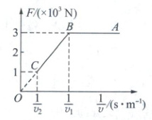 10. (典型题)[2024 江苏盐城期中]一辆汽车以恒定的加速度由静止开始沿水平路面做直线运动,其行驶过程中牵引力 F 与车速的倒数$ \frac{1}{v} $的关系如图所示,$v_{2} $为行驶过程中的最大速度。已知汽车质量为$ 1×10^{3} kg,$最大功率为$ 2×10^{4} W,$运动过程中汽车所受的阻力恒定。