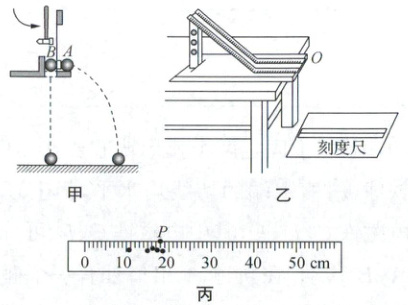 s.(3)如图丙所示,小球落在刻度尺上的 P 点,则小球的水平位移大小为