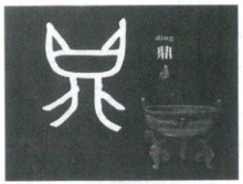 1. 下图是甲骨文“鼎”的书写,描绘了一个烹饪容器的形状,上半部分像一口锅,带有两个角,下半部分是两根支柱。由此可知,“鼎”的造字方法是