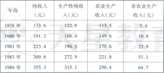 分析表中数据可知,1978—1984年我国农民人均收入增长明显。