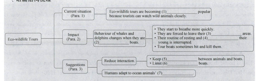 【语篇导读】本文是一篇说明文。文章主要介绍了生态野生动物之旅给鲸鱼和海豚等海洋动物带来的负面影响,并提出了一些保护这些动物的建议。