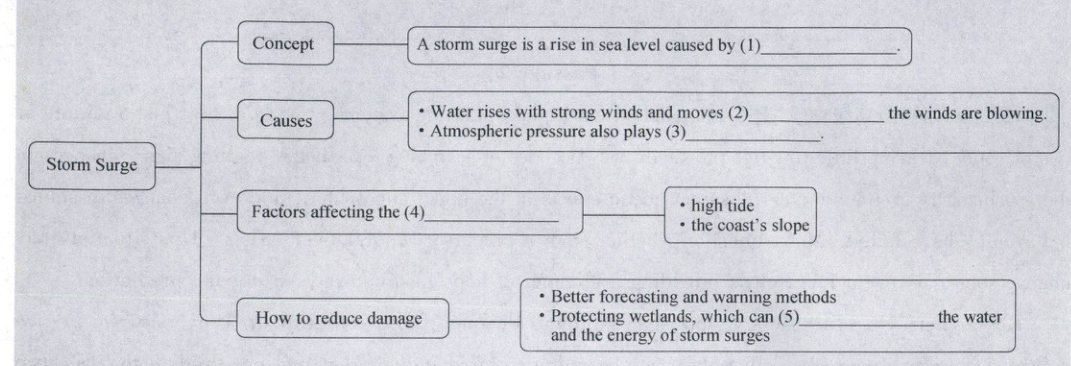 【语篇导读】本文是一篇说明文。文章主要介绍了风暴潮的形成原因、影响因素、危害以及可采取的应对措施。