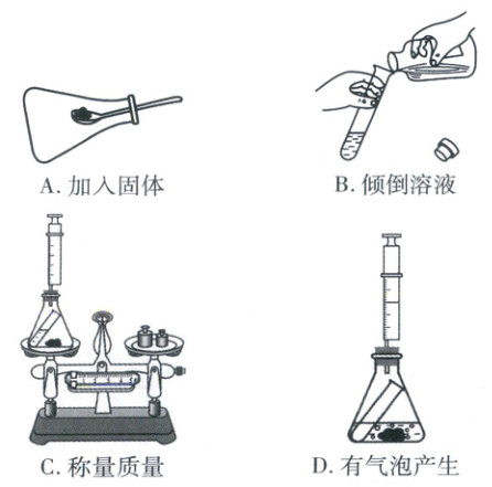 3. 某同学利用H₂O₂溶液在MnO₂作用下的反应,探究化学反应前后物质的质量关系。下列操作或现象错误的是