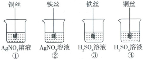 ④$Cu$与稀硫酸不反应,可得金属活动性:$Cu < (H)$。