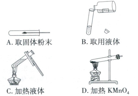 D(×) 给试管中的高锰酸钾加热时,试管口应略向下倾斜,防止冷凝水倒流,炸裂试管,且应在试管口塞一团棉花,防止加热时试管内粉末状物质进入导管。