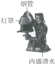 6. 如图所示长信宫灯被誉为“中华第一灯”,人的右臂与灯的烟道相通,灯罩左右开合能调节灯光的亮度,宫灯内燃料燃烧产生的烟灰和废气会通过烟管引入水中。下列有关说法错误的是(