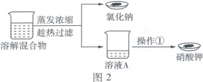 (3)利用硝酸钾和氯化钠的溶解度差异可从二者的混合物中获得纯净物,如图 2 所示,先经过蒸发浓缩,趁热过滤分离得到氯化钠,趁热过滤的原因是