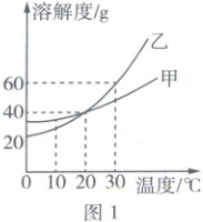 9. 图 1 为甲、乙两种物质(均不含结晶水)的溶解度曲线。