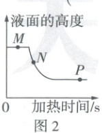 10. 新考法 实验分析与图像相结合 分析兴趣小组同学用图1所示装置完成加热高锰酸钾并收集一瓶氧气的任务,集气瓶内液面的高度随加热时间的变化如图2所示,其中$P$点时将集气瓶从水槽中取出。下列说法正确的是(