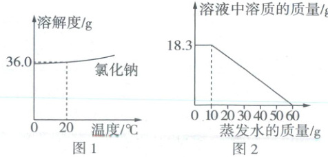 (填操作名称)的原理相同。(4)在$40\ ^{\circ}C$时,恒温蒸发一定质量的氯化钠溶液模拟海水晒盐的过程,溶液中溶质的质量与蒸发水的质量关系如图2所示。该实验所用氯化钠溶液是