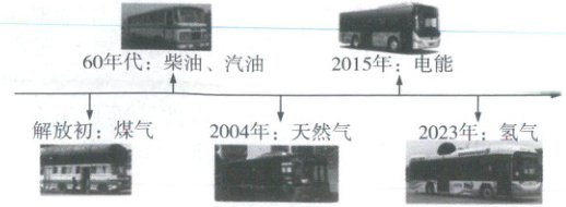 11. 新教材 跨学科实践 (4分)石家庄公交车使用的能源经历了如图所示的变迁,对环保和可持续发展产生了深远影响。