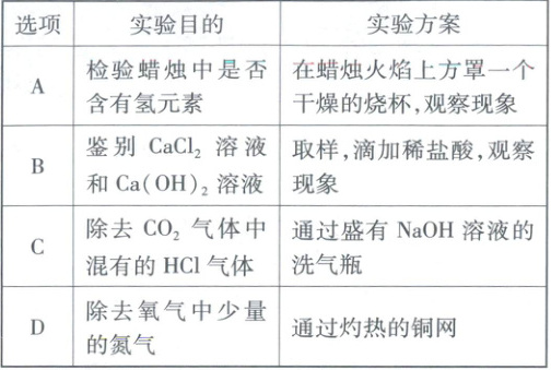 9. 物质的检验、鉴别和除杂是科学探究的重要组成部分。下列实验方案设计正确的是(