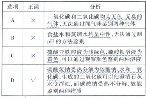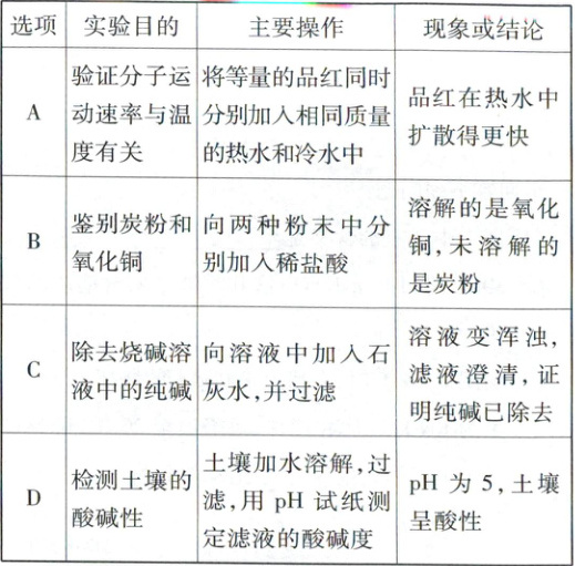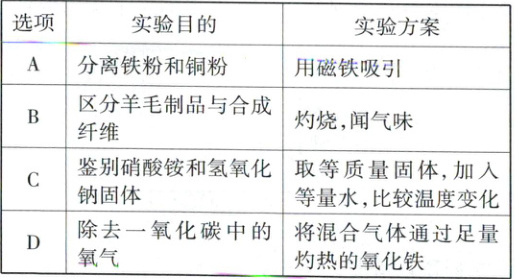 D.鉴别 Fe 粉和 CuO 粉末——分别加入适量 NaOH 溶液