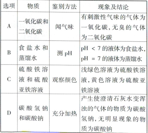 4. 下列各组物质的鉴别方法、现象及结论均正确的是 (