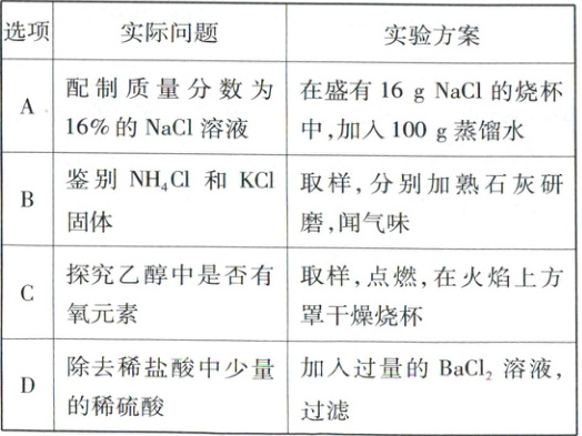 7 B A(不能)在盛有16g NaCl的烧杯中,加入100g蒸馏水,所得溶液的溶质质量分数为$\frac{16g}{16g + 100g}×100\% ≈ 13.8\%。$