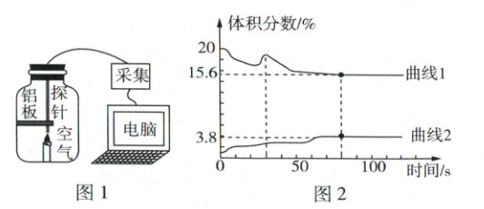 C(合理)反应后氧气含量减小,二氧化碳含量增大,说明曲线1表示氧气含量,曲线2表示二氧化碳含量,图2中的数据可以说明空气中氧气的含量高于二氧化碳。