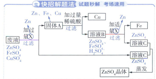2. 为了防止环境污染,工厂废液需经过处理达标后才能排放。某电镀厂为了减少对水的污染并节约成本,从排放的废液(主要含 ZnSO₄、FeSO₄ 和 CuSO₄)中回收金属铜、铁以及工业原料硫酸锌,设计了如图所示的工艺流程。