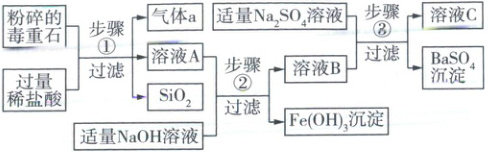 3. (2025 廊坊广阳区二模)硫酸钡是一种白色固体,医疗上常用作透视肠胃的内服剂。以毒重石(主要成分是碳酸钡,还含有少量氧化铁和二氧化硅)为原料,生产硫酸钡的部分工艺流程如图所示。