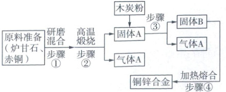 5. (2025 唐山开平区二模)我国古代将炉甘石(ZnCO₃)、赤铜(Cu₂O)和木炭粉混合后加热到约 800℃,得到一种外观似金子的锌和铜的合金,相关流程如下。(提示:ZnCO₃ 受热分解可生成 ZnO 等)