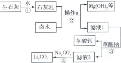 4. 碳酸锂(Li₂CO₃)是制备新能源汽车电池的重要原料。我国盐湖卤水中主要含有氯化锂、氯化钠、硫酸镁等溶质,一种以化学沉淀法从卤水中生产碳酸锂的工艺如图。