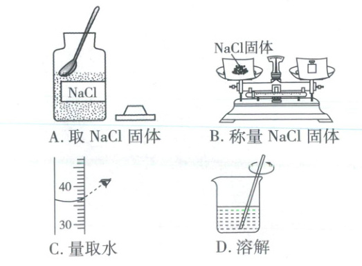 4. 如图所示为配制一定溶质质量分数的氯化钠溶液的部分操作,其中错误的是(